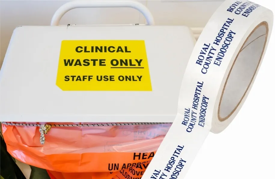 Cost-effective sealing of clinical waste bags; simply swan neck the top of bag and apply sealing tape
