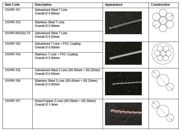 Galvanised Steel 2-Line (Ø0.45mm + Ø0.25mm). Overall Ø0.95mm